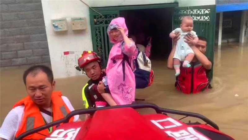 在2020年的抗洪戰(zhàn)斗中,晉松奇率領(lǐng)5人增援小組,星夜馳援河南信陽、安徽六安兩地。在信陽,小組累計(jì)出動(dòng)舟艇13艘次,疏散人員63人、營救49人,共計(jì)112人,連續(xù)救援26小時(shí);在安徽,小組開展作戰(zhàn)行動(dòng)16次,營救被洪水圍困的群眾183人。在轉(zhuǎn)移被困人員的戰(zhàn)斗中,他小心抱起嬰兒的畫面被拍下發(fā)至網(wǎng)上,被網(wǎng)友評(píng)價(jià)“你小心的樣子,真帥!”談起這段視頻,晉松奇笑著說:“孩子太小了,抱著的時(shí)候特別緊張,就一直托著,但因?yàn)樗睿€是踩空一步,心里當(dāng)時(shí)咯噔一下。后來看到視頻下面有個(gè)評(píng)論特別有意思,說我抱孩子像抱著炸彈一樣?!?021年7月中下旬,晉松奇又一次主動(dòng)遞交請(qǐng)戰(zhàn)書加入周口消防支隊(duì)防汛救災(zāi)突擊隊(duì),前往扶溝前置備勤。帶隊(duì)組建舟艇搜救小組,挨家挨戶搜尋200多家農(nóng)戶,轉(zhuǎn)移受困群眾13名。