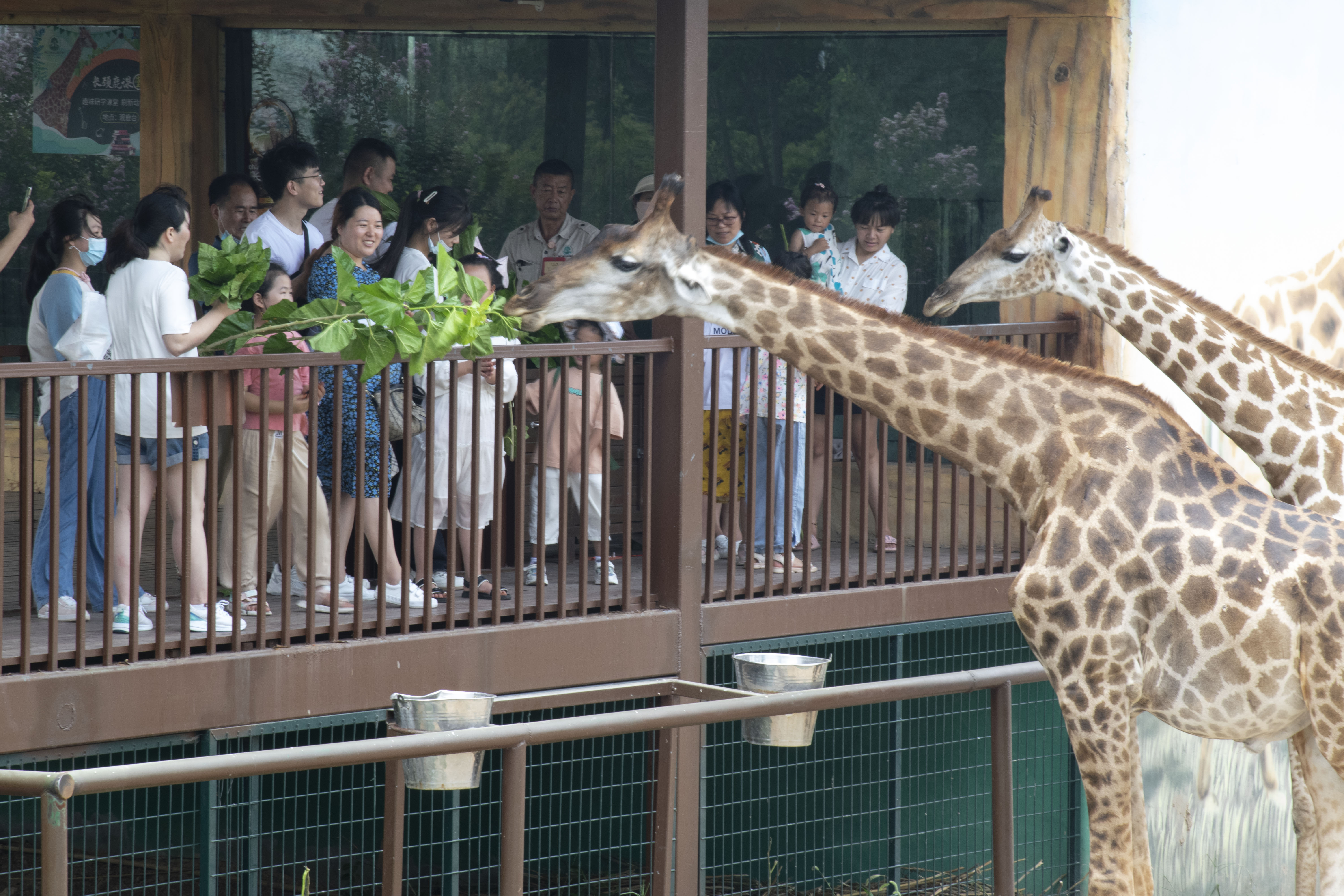 中午,在觀鹿餐廳,與長(zhǎng)頸鹿共進(jìn)午餐,在你享用西餐美食時(shí),可以投喂它們一把樹(shù)葉,人鹿相望、相近、相親。