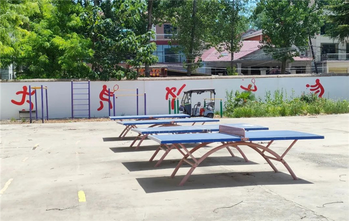 操場(chǎng)上鮮紅的圖案、文字為校園文化建設(shè)注入了新鮮活力。