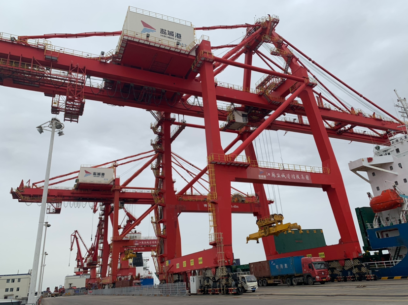他們的努力得到了巨大回報(bào):2021年,鹽城港吞吐量突破1億噸,同比增長62.38%,集裝箱吞吐量達(dá)到40萬標(biāo)箱,同比增長50%。按交通運(yùn)輸部統(tǒng)計(jì)數(shù)據(jù),貨物吞吐量和集裝箱吞吐量增速均為全國沿海54個(gè)港口第二位。