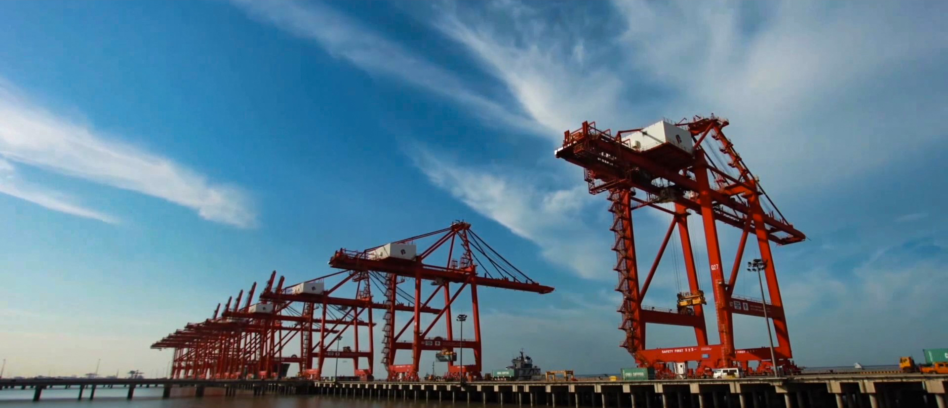 高高聳立的太倉(cāng)港碼頭起重機(jī)