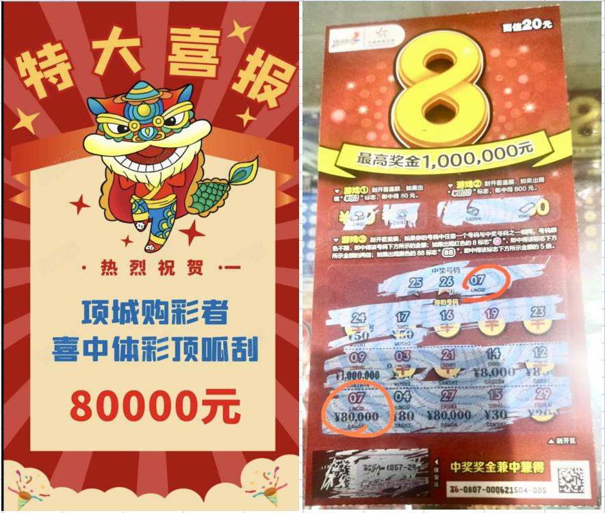 近日,周口項(xiàng)城市購(gòu)彩者張先生(化名)來(lái)到周口體彩分中心辦理了兌獎(jiǎng)手續(xù)。他刮的一張頂呱刮“超值8”即開(kāi)型彩票中得8萬(wàn)元大獎(jiǎng)。