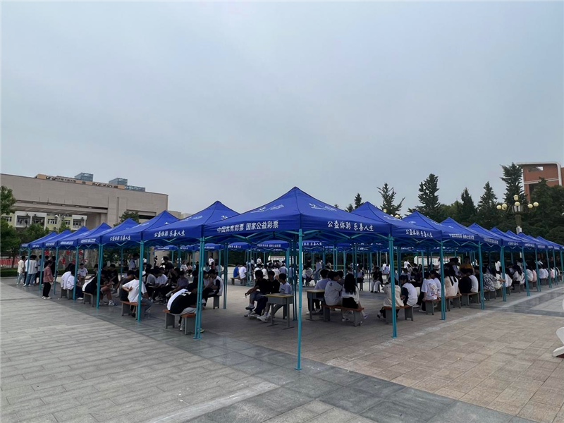 本次活動周口體彩分中心協(xié)調(diào)到40余頂帳篷,在考場外設(shè)置服務(wù)點為考生及家長提供飲用水、歇息區(qū)。結(jié)合周口市文昌中學(xué)實際情況,在考場校園內(nèi)搭設(shè)一整片體彩遮陽帳篷陰涼區(qū)域,為考生候場提供一片“清涼”。 與此同時,體彩志愿者熱情地為考生及家長提供愛心服務(wù),送上一瓶瓶清涼的礦泉水,帶著滿滿的愛心與祝福,給莘莘學(xué)子們加油助威,讓他們切身感受到體彩人的擔(dān)當(dāng)和真摯的關(guān)愛。