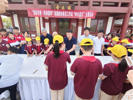 本次活動,特邀劉氏毛筆制作技藝第六十七代傳承人劉永杰現(xiàn)場講解和演繹毛筆的制作過程,40多名中小學(xué)生親身體驗(yàn),親手制作,更深一步了解毛筆的制作工序,讓毛筆制作技藝不斷發(fā)揚(yáng)光大,讓非遺文化不斷的傳承下去,激勵學(xué)生們寫好中國字,做好中國人。委員們和學(xué)子們在非遺傳承人的指導(dǎo)下,共同制作“蘇園狀元筆”。