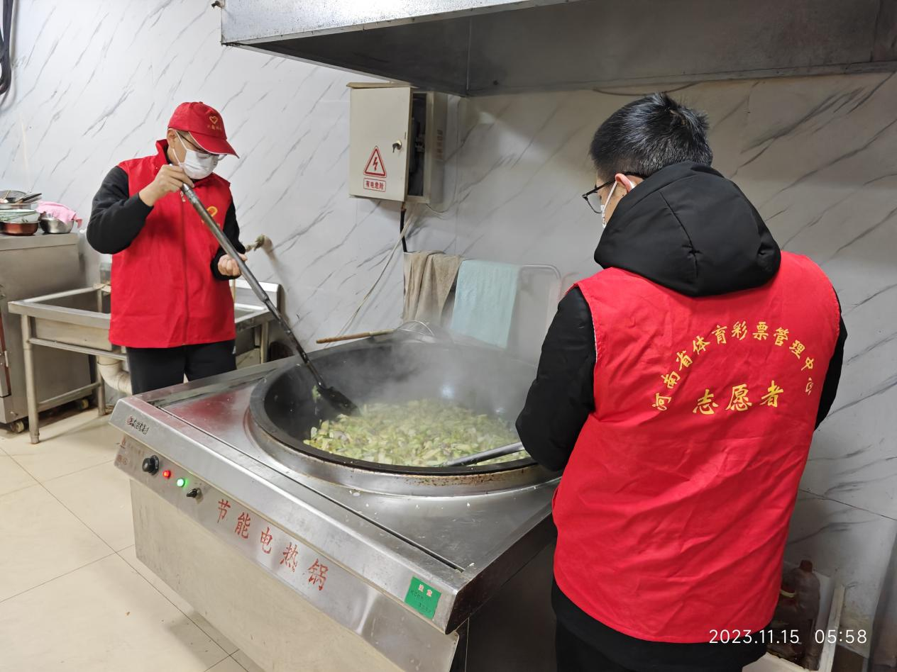 11月16日凌晨5時(shí),周口體彩分中心志愿者還到“東方愛(ài)心粥屋”開(kāi)展志愿服務(wù)活動(dòng),幫助粥屋工作人員洗菜、切菜、炒菜、熬粥。