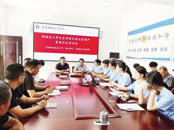 本報(bào)訊 (記者 徐松 通訊員 邢佰強(qiáng) 翟玥 趙坤哲 文/圖) 為推動(dòng)法治鄉(xiāng)村建設(shè),7月11日,鄲城縣委宣傳部和縣司法局組織法律專業(yè)大學(xué)生成立宣講團(tuán),到汲冢鎮(zhèn)開展普法宣傳活動(dòng)。大學(xué)生志愿者走進(jìn)田間地頭,把“法言法語”化為“鄉(xiāng)音鄉(xiāng)語”,為法治鄲城建設(shè)注入了青春活力。