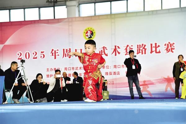 11月1日上午,小朋友展示長拳。當(dāng)日,由周口市武術(shù)協(xié)會主辦、周口市體育中心協(xié)辦的“2025年周口市武術(shù)套路比賽”在周口市體育中心開賽,來自全市不同武術(shù)門派和拳種的43支代表隊的千名武術(shù)愛好者參與套路、器械等比賽,他們的扎實功底和不同風(fēng)格的拳術(shù)展示贏得陣陣喝彩,展示了我市武術(shù)發(fā)展的成果。記者 梁照曾 攝
