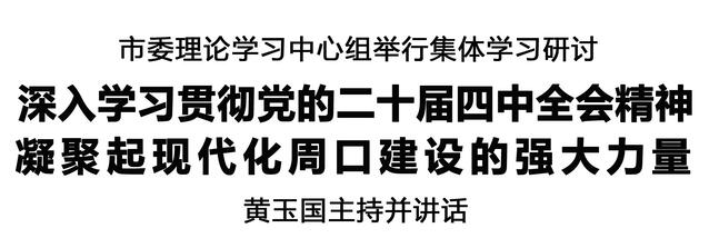 黃玉國強(qiáng)調(diào),學(xué)習(xí)好、宣傳好、貫徹好全會精神是全市上下當(dāng)前和今后一個(gè)時(shí)期的重大政治任務(wù)。市級領(lǐng)導(dǎo)干部要帶頭學(xué)習(xí)宣傳貫徹黨的二十屆四中全會精神,帶動廣大黨員干部把思想和行動統(tǒng)一到黨中央決策部署上來,扎扎實(shí)實(shí)做好各項(xiàng)工作,推動全會精神在我市落地生根、見行見效。要在學(xué)深悟透、入腦入心上帶好頭,堅(jiān)持原原本本學(xué)、融會貫通學(xué)、聯(lián)系實(shí)際學(xué),把學(xué)習(xí)領(lǐng)會全會精神同深入學(xué)習(xí)貫徹習(xí)近平總書記在我省考察時(shí)重要講話精神和關(guān)于河南工作的重要論述結(jié)合起來,同學(xué)習(xí)《習(xí)近平談治國理政》第五卷結(jié)合起來,做到真學(xué)真信真用、學(xué)懂弄通做實(shí)。要在宣傳宣講、營造氛圍上帶好頭,集中力量對全會精神進(jìn)行全方位宣講、多角度報(bào)道、深層次解讀,組織開展專題宣傳活動,讓全會精神“飛入尋常百姓家”。要在全面貫徹、對標(biāo)落實(shí)上帶好頭,做好“十五五”發(fā)展謀篇布局,堅(jiān)決打好冬春季攻保戰(zhàn)役,確保圓滿完成全年目標(biāo)任務(wù)、順利實(shí)現(xiàn)“十四五”收官,為“十五五”良好開局打牢基礎(chǔ)。①6