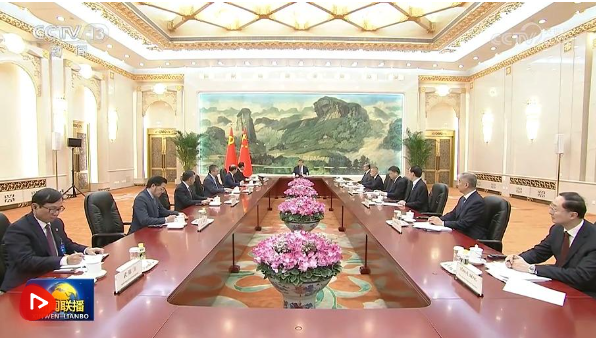 習(xí)近平強調(diào),中越兩國推進社會主義建設(shè)各項事業(yè)蓬勃發(fā)展,向世界昭示了社會主義制度的生機和活力。中方將一以貫之高度重視發(fā)展中越關(guān)系,愿同越方一道,牢牢把握社會主義前途命運,秉持“十六字”方針和“四好”精神,按照“六個更”總體目標(biāo),落實好高層共識,不斷弘揚傳統(tǒng)友誼,深化各層級交往和各領(lǐng)域合作,妥善管控分歧,推動中越命運共同體建設(shè)闊步向前。