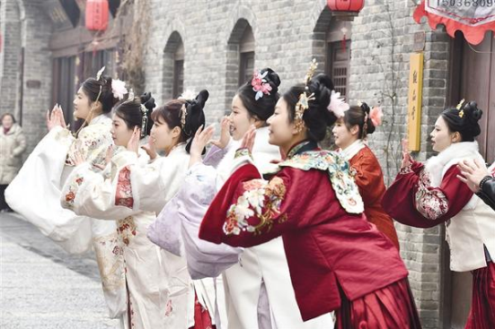 1月31日,漢服愛好者在南寨歷史文化街區(qū)打卡拍照。當(dāng)日,南寨歷史文化街區(qū)開街在即,市民齊聚古巷,歡騰的民俗節(jié)目讓老街滿是煙火氣,大家用最熱鬧的方式,迎接這份屬于周口的歷史與新生,共盼古街區(qū)煥新綻放。