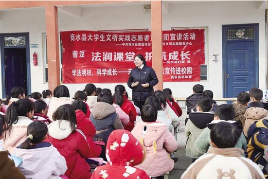 近日,大學(xué)生志愿者為商水縣胡吉鎮(zhèn)前劉小學(xué)的學(xué)生講解法律知識(shí)。來自商水縣新時(shí)代文明實(shí)踐服務(wù)中心、婦聯(lián)、司法局、檢察院的大學(xué)生志愿者宣講團(tuán),用案例講解、游戲互動(dòng)的方式,為孩子們送上了一份涵蓋理想、安全、法治的成長“大禮包”。