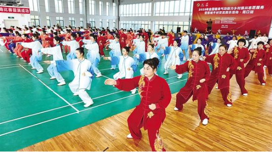 參賽隊(duì)員在比賽中。近日,2025年全國(guó)健身氣功助力鄉(xiāng)村振興志愿者服務(wù)暨百城千村展演交流展示活動(dòng)·周口站在周口市體育中心老年館拉開帷幕,來(lái)自我市健身氣功協(xié)會(huì)24個(gè)站點(diǎn)的代表隊(duì)及周口高校的5支大學(xué)生參賽隊(duì)共200余人齊聚一堂,在五禽戲、八段錦、大舞、導(dǎo)引養(yǎng)生功十二法四大項(xiàng)目40個(gè)小項(xiàng)中展開精彩角逐。