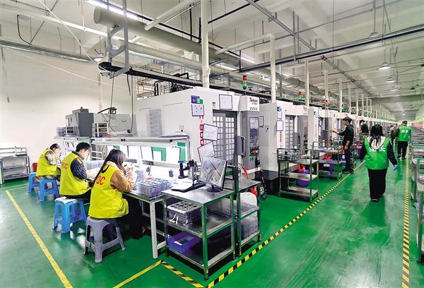 位于西華縣的昌盛年產(chǎn)2000萬套智能零部件項目,主要生產(chǎn)手機、電腦配套五金和納米注塑制品。目前該項目已投產(chǎn)試運營,項目全部投產(chǎn)達效后,將實現(xiàn)年納稅500萬元以上,帶動就業(yè)800人以上。圖為工人正在加工訂單產(chǎn)品。
