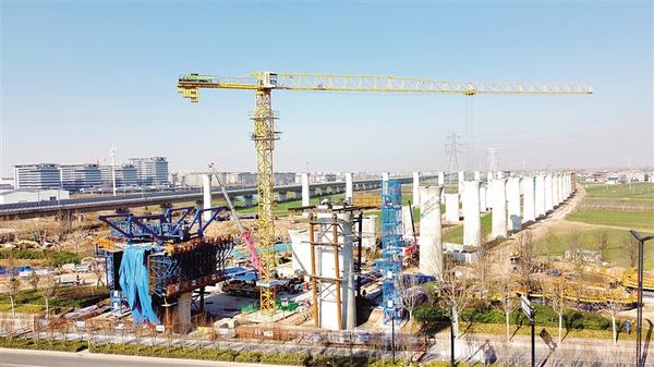 1月8日,平漯周高鐵周口段跨太清路工程現(xiàn)場(chǎng)施工正酣。塔吊林立間,工人們堅(jiān)守崗位、緊張作業(yè),鋼筋綁扎、橋梁架設(shè)等工序有序推進(jìn),鋼鐵長龍?jiān)诔鞘猩峡罩饾u形成。