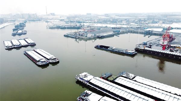 雪落沙潁河,潮涌新征程。1月1日,新年第一天,周口中心港范營作業(yè)區(qū)碼頭上,工人有條不紊地裝卸著各類貨物。河面上,待泊的貨船排起長隊,船民們細(xì)心清理船上的積雪。另有滿載貨物的貨船鳴笛啟航,駛向遠(yuǎn)方。