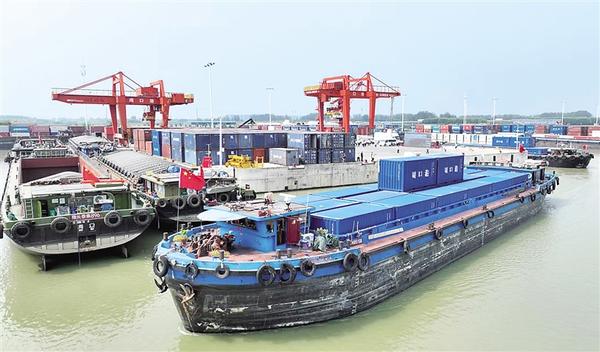 沙潁河畔,秋意正濃。一艘艘滿載貨物的船舶踏浪而行,駛向周口港范營(yíng)作業(yè)區(qū)。碼頭上,龍門吊高聳入云,運(yùn)輸車輛川流不息,工人們忙碌作業(yè),呈現(xiàn)出一派欣欣向榮的景象。