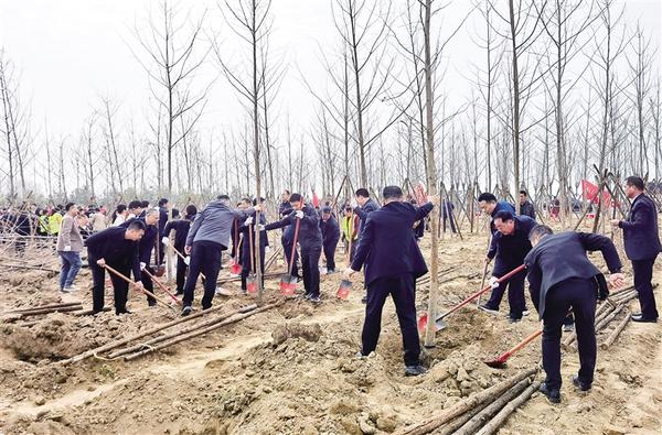 3月13日上午,我市社會各界群眾來到中心城區(qū)植樹基地開展2025年春季義務植樹活動。今年中心城區(qū)植樹基地選址在市城鄉(xiāng)一體化示范區(qū)引黃調(diào)蓄湖東南部,種植有水杉、銀杏、垂絲海棠、高桿石楠等樹種。