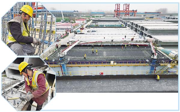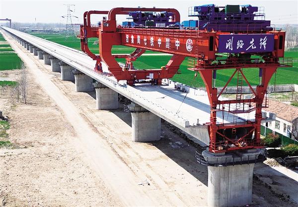 3月17日上午,中鐵七局的工人正在緊張施工。目前,平漯周高鐵項目快速推進,周口境內(nèi)商周特大橋跨河流、國道、高速等連續(xù)梁施工進入加班加點搶工期階段,樁基、承臺、墩身施工接近尾聲,已鋪架箱梁90榀。