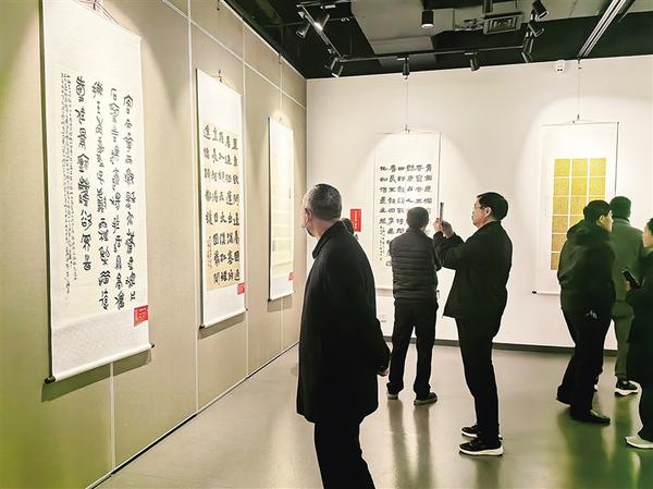 3月14日,市民在周口美術(shù)館觀展。由中共河南省委宣傳部、河南省文學藝術(shù)界聯(lián)合會指導,河南省美術(shù)家協(xié)會、河南省書法家協(xié)會等部門共同主辦的“翰墨潤中原——河南省美術(shù)書法作品大賽獲獎作品展周口巡展”當日開展。