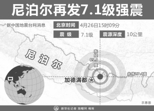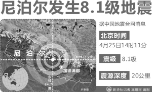 當(dāng)?shù)貢r間25日12時(北京時間14時)許,尼泊爾中部地區(qū)突發(fā)7.9級強(qiáng)烈地震(中國地震臺網(wǎng)測定為8.1級),震中位于廓爾喀縣,距首都加德滿都約75公里,震源深度約20公里,屬強(qiáng)破壞性的淺源地震。尼泊爾政府現(xiàn)已宣布在29個地震重災(zāi)區(qū)實(shí)施緊急狀態(tài),動員所有力量參與救援,并呼吁民眾為減少后續(xù)災(zāi)害做出貢獻(xiàn)。
