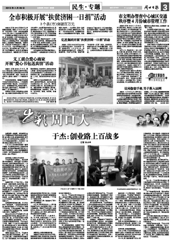 回顧自己的創(chuàng)業(yè)生涯,于杰認為無論做人還是做事,一定要自信?!白鳛橐粋€周口人,我感到很驕傲很自豪,周口是一個人杰地靈的地方,有很深厚的文化底蘊,五千年的周口文化讓我非常自信。只要有自信、有理想、能堅持就沒有完成不了的目標,周口人到哪都不差,到哪都能成功!”于杰如是說。