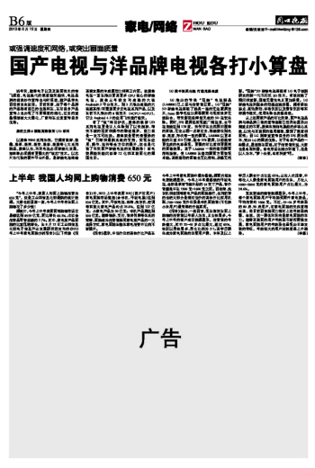 上半年 我國人均網上購物消費650元