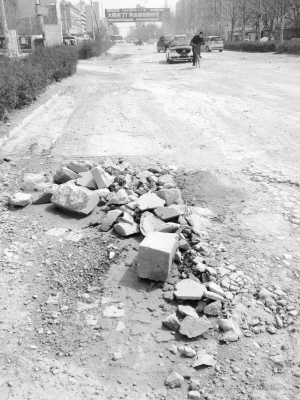 當(dāng)日,記者在現(xiàn)場看到,這里的路面坑坑洼洼(如圖),和半年前的情況一模一樣。記者還發(fā)現(xiàn),這段路上堆放著大量建筑垃圾,道路變得更加難行。