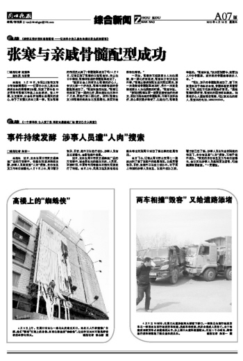 張寒與親戚骨髓配型成功